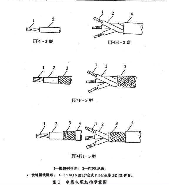 FF4H9-3 鍍鎳銅芯PTFE絕緣PFA護套電線電纜
